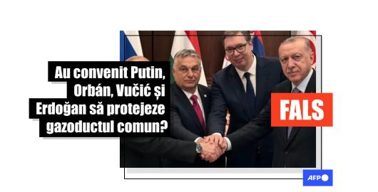 Imagine Alegerile din Ungaria în 2026 Publicat pe 16/04/2026 Imaginea acordului dintre Putin, Orbán, Vučić și Erdoğan privind protejarea conductei de gaz a fost generată de AI