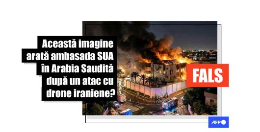 Imagine Iran Publicat pe 13/03/2026 Un videoclip și o imagine AI nu arată atacul iranian asupra ambasadei SUA din Riad