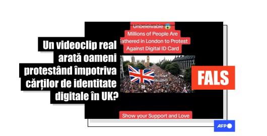 Imagine Inteligența artificială Publicat pe 30/10/2025 Acesta este un videoclip generat cu AI; nu arată un protest real împotriva cărților de identitate digitale din UK