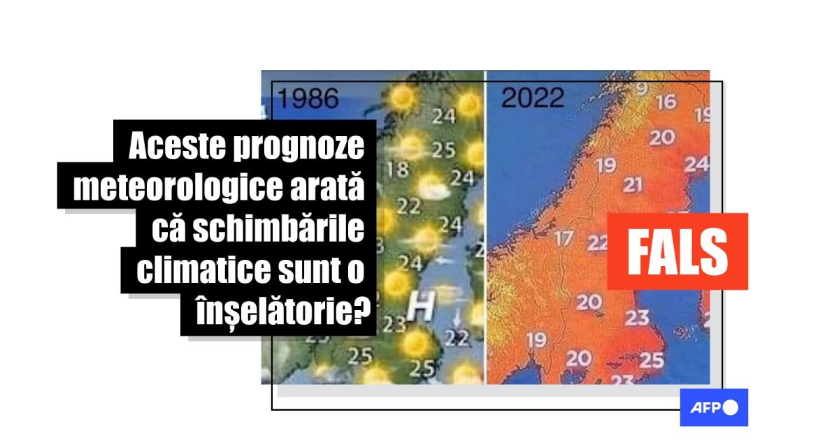 Sute de utilizatori români ai rețelelor de socializare au distribuit, la începutul lunii iunie 2022, o imagine care prezintă două hărți de prognoză meteo, susținând că cea mai nouă hartă folosește nuanțe diferite de roșu pentru a ilustra aceleași temperaturi, pentru a induce în eroare oamenii cu privire la gravitatea încălzirii globale. „Agenda NWO. În 1986 era numită o vară normală. Astăzi, colorează harta în roșu și o numesc căldură extremă”, spun mai multe postări pe Facebook (aici, aici, aici).