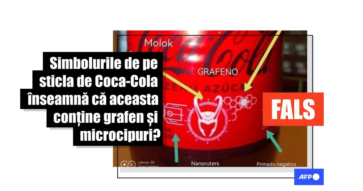 „Infestarea cu grafen a oamenilor prin toate mijloacele. Pe eticheta noului tip de Coca-Cola, apar simboluri oculte, sataniste, structuri hexagonale specifice grafenului, nano-dispozitive care trimit cu gândul la nano-cipuri”, spune această postare pe Facebook din 31 ianuarie 2023, distribuită de peste 500 de ori de atunci.