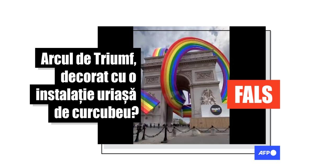 „Eroii francezi se răsucesc in mormânt (...) Arcul de Triumf din Paris, un monument emblematic care comemorează toți soldații care și-au dat viața pentru patria lor, a fost dezonorat de primarul socialist cu un curcubeu uriaș pentru a onora mândria Lgtbi...”, scrie o postare pe Facebook din 3 iunie 2023, care distribuie un videoclip cu Arcul de Triumf parizian decorat cu o instalație curcubeu.