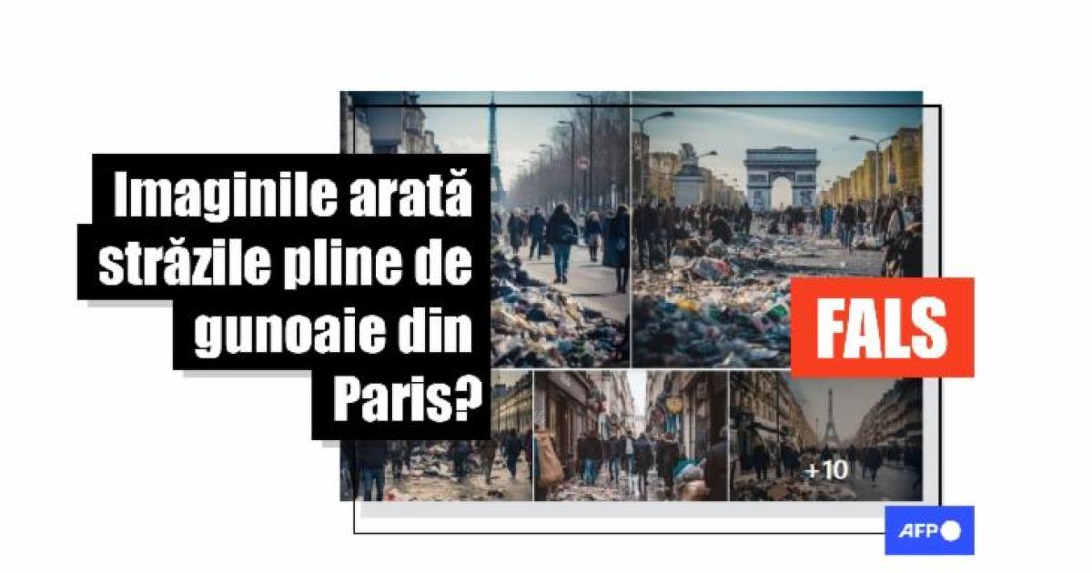 Imagini generate de inteligența artificială care arată străzi acoperite de gunoaie în fața unor obiective turistice pariziene au început să se răspândească online în vara anului 2023, unii utilizatori de internet presupunând în mod eronat că imaginile erau fotografii reale ale orașului. Însă, după ce a examinat elementele vizuale din imagini, le-a comparat cu locații din lumea reală și a contactat utilizatorul care a postat inițial imaginile, AFP a reușit să stabilească faptul că imaginile au fost create cu ajutorul unui program de generare de imagini AI.