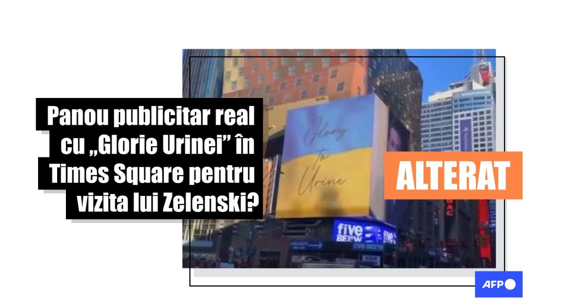 Imagini cu un panou publicitar fals din Times Square au circulat în timp ce Zelensky a vizitat SUA