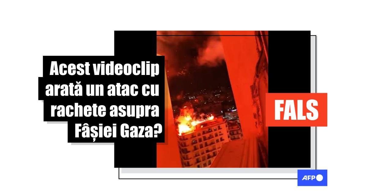 Printre acestea se numără un videoclip cu un oraș iluminat în lumină roșie, cu obiecte lansate de pe acoperișuri. „Imagini din fâșia Gaza! Israel bombardează zone rezidențiale și vă vine să credeți sau nu, localnicii 'răspund'... cu focuri de artificii!”, spune această postare de pe Facebook din 9 octombrie 2023, care îl distribuie.