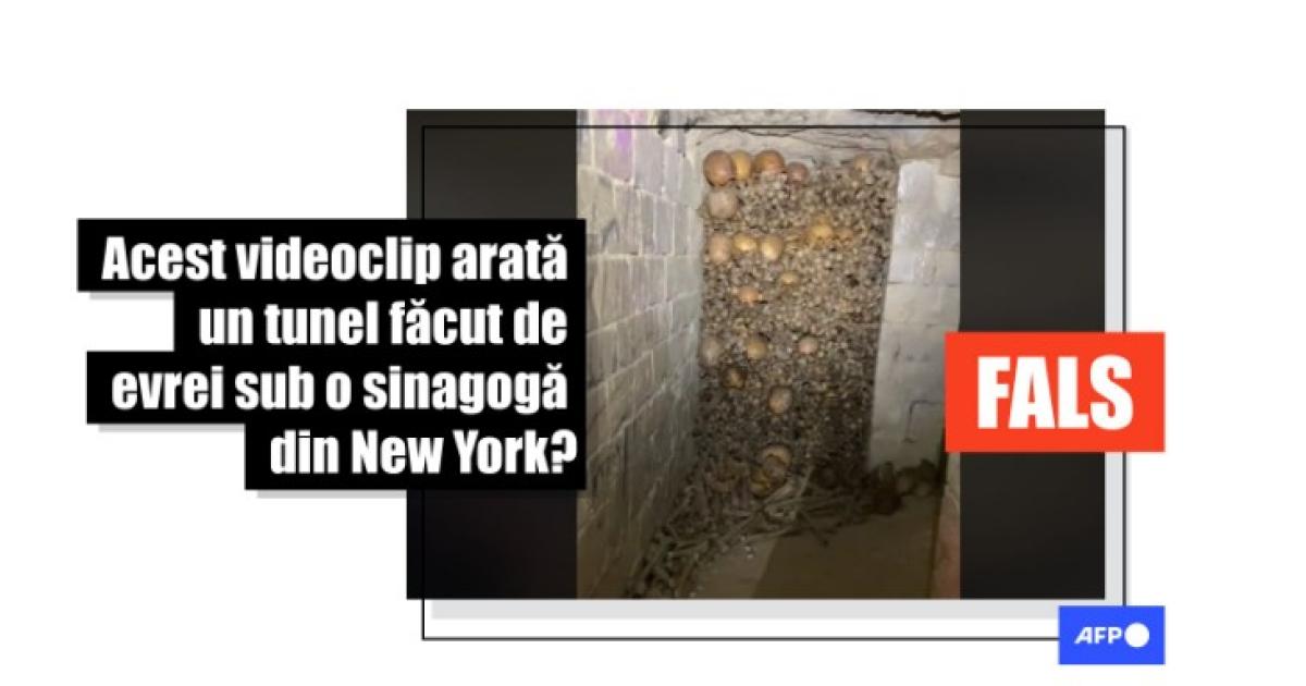 Un tunel ilegal a fost descoperit recent sub o sinagogă celebră din Brooklyn, New York, ceea ce a dus la conflicte între unii credincioși și poliția locală, potrivit presei. În acest context, un videoclip care arată sicrie, mormane de oase și o piramidă în peșteri subterane luminate de lumânări este distribuit pe rețelele de socializare cu afirmația falsă că arată acest tunel din New York, declanșând reacții antisemite în mai multe limbi. În realitate, acest videoclip este vechi de câțiva ani și a fost filmat de pasionați de „urbex” în labirintul de galerii de sub Paris, după cum confirmă dovezile vizuale și un expert în subteranul parizian.