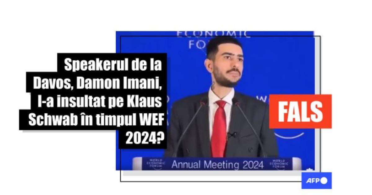 Întâlnirea anuală este intens relatată de mass-media, dar AFP nu a găsit nicio dovadă a vreunui incident similar care să fi avut loc la întâlnirea anuală din 2024 și care să fi fost relatat de vreun organ de presă de încredere, inclusiv de AFP (link arhivat aici). AFP nu a putut găsi pe site-ul evenimentului nicio persoană cu numele Damon Imani printre invitații și vorbitorii de la WEF 2024. Cea de-a 54-a reuniune anuală are invitați precum președintele ucrainean Volodimir Zelensky sau Antony Blinken, secretar de stat al Statelor Unite.