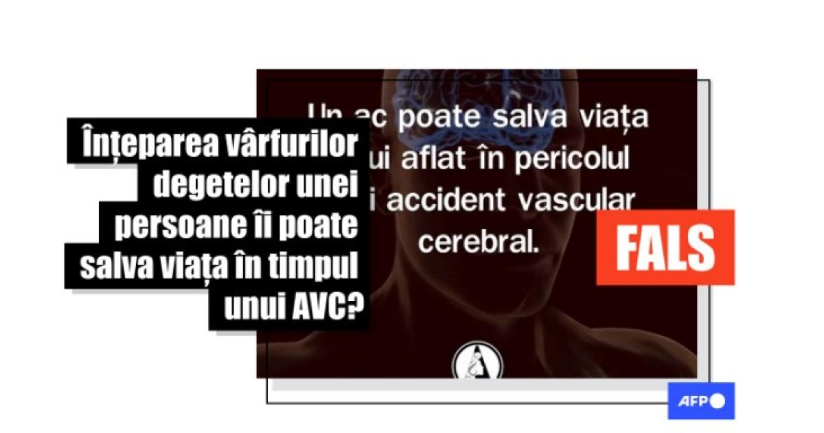 În fiecare an, zeci de mii de români suferă un accident vascular cerebral, această afecțiune medicală fiind una dintre principalele cauze de deces și invaliditate în țară, avertizează autoritățile. Postări pe rețelele de socializare și articole publicate online în ultimii ani au răspândit afirmația falsă și potențial periculoasă potrivit căreia înțeparea cu un ac a vârfurilor degetelor victimei unui AVC îi va salva viața. Însă experții în sănătate avertizează că aceasta este o absurditate care ar putea pune în pericol sănătatea și viața unei persoane. Aceștia spun că tratarea unui accident vascular cerebral necesită echipamente și expertiză specială, iar cel mai important lucru care trebuie făcut este să se apeleze imediat la o ambulanță.