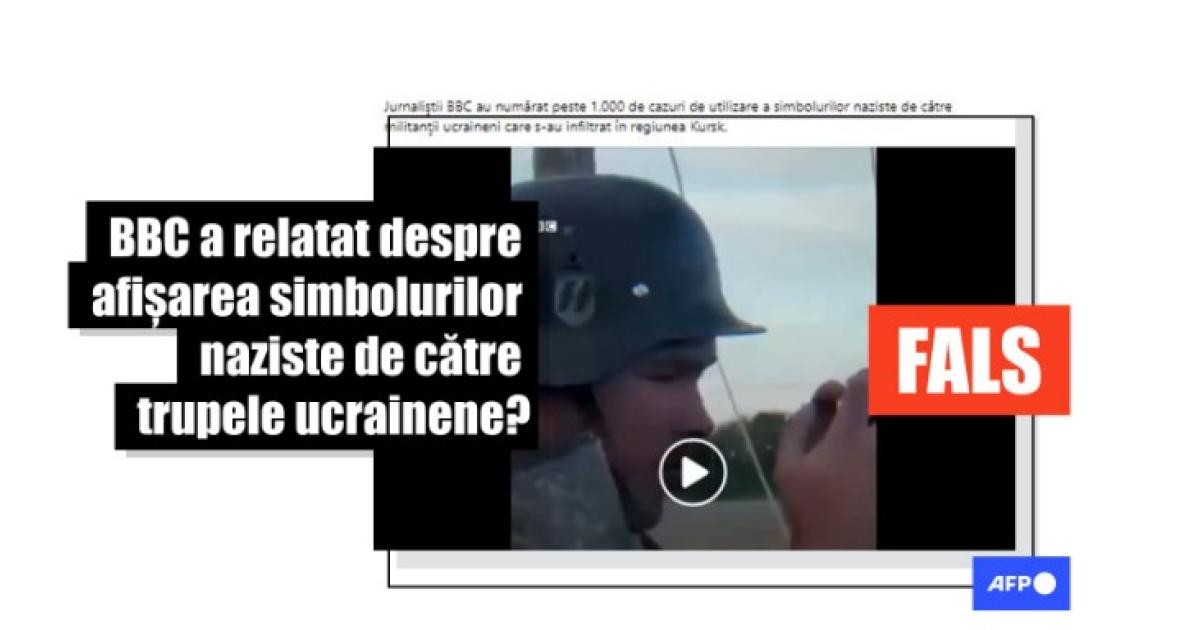 „Jurnaliştii BBC au numărat peste 1.000 de cazuri de utilizare a simbolurilor naziste de către militanţii ucraineni care s-au infiltrat în regiunea Kursk”, susțin mai multe postări pe Facebook (aici, aici, aici) distribuite împreună cu un videoclip cu scrieri în limba engleză care susțin că Reporteri Fără Frontiere a revizuit videoclipuri și a raportat astfel de manifestări. Afirmația se potrivește cu unul dintre pilonii narațiunii Moscovei care justifică invazia la scară largă a Ucrainei.