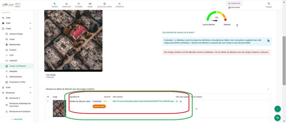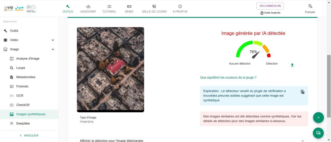 „Este posibil ca un prompt (o instrucțiune scrisă) să fi fost folosit pentru a adăuga o casă nearsă într-o fotografie aeriană deja existentă,” a spus Teyssou. „Alternativ, ar fi putut fi un prompt care cere o fotografie aeriană a unui cartier urban ars, cu o casă intactă în centru.”