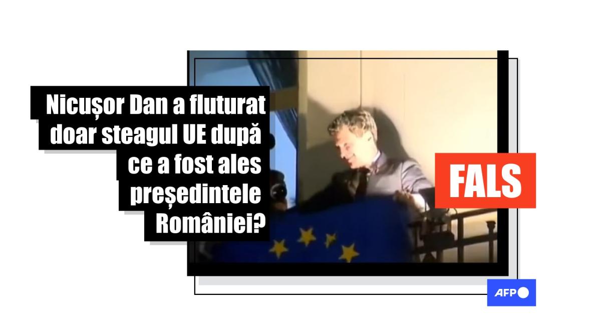 În timp ce unele postări afirmau pur și simplu că Dan a afișat steagul UE, altele susțin în mod fals că acesta l-a fluturat „în locul” sau înaintea steagului României.