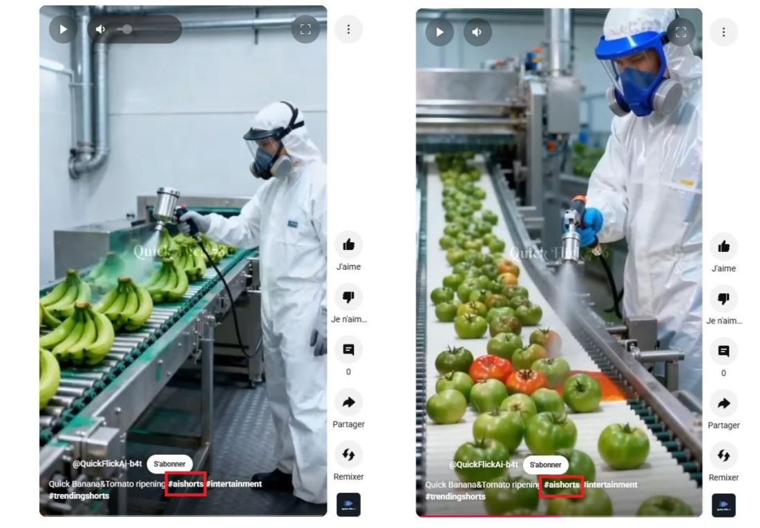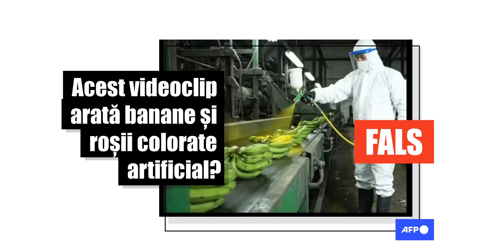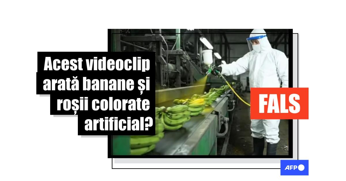 Coloranții alimentari sunt strict reglementați în Uniunea Europeană, unde doar un număr limitat de aditivi aprobați pot fi utilizați în condiții specifice, iar niciunul nu este autorizat pentru fructe și legume neprocesate. Aceleași reguli se aplică și în România, unde Autoritatea Națională Sanitară Veterinară și pentru Siguranța Alimentelor (ANSVSA) supraveghează respectarea acestora. Cu toate acestea, la sfârșitul lunii septembrie 2025, utilizatori ai rețelelor sociale au distribuit un videoclip care părea să arate muncitori dintr-o fabrică vopsind cu spray banane și roșii pe o bandă de producție, susținând că acesta dovedește că produsele proaspete sunt colorate artificial. Totuși, imaginile au fost generate cu ajutorul inteligenței artificiale (AI), iar producători europeni de fructe și legume au declarat pentru AFP că o astfel de practică nu există.