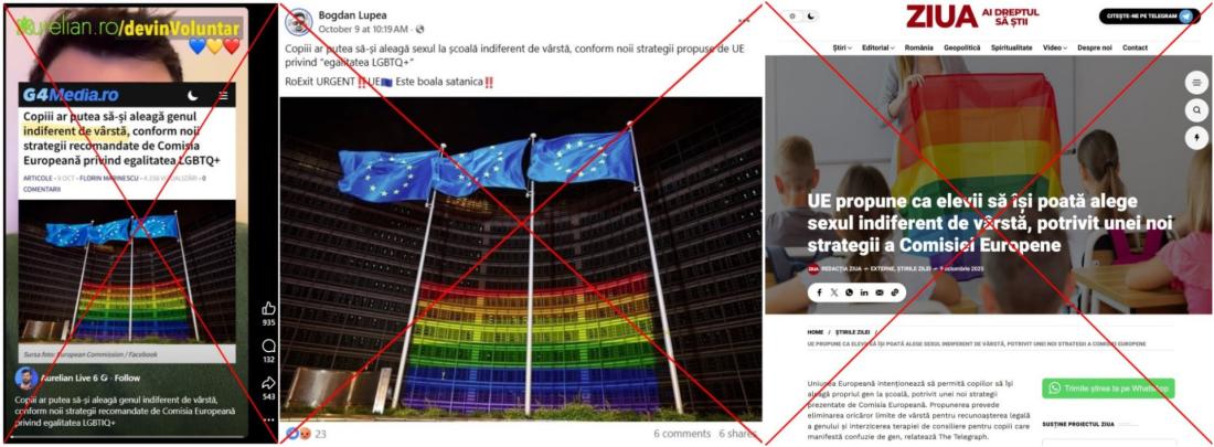 AFP a demontat anterior mai multe afirmații false privind presupusa „impunere” a agendei LGBTIQ+ de către UE asupra României și Moldovei, de exemplu aici sau aici.