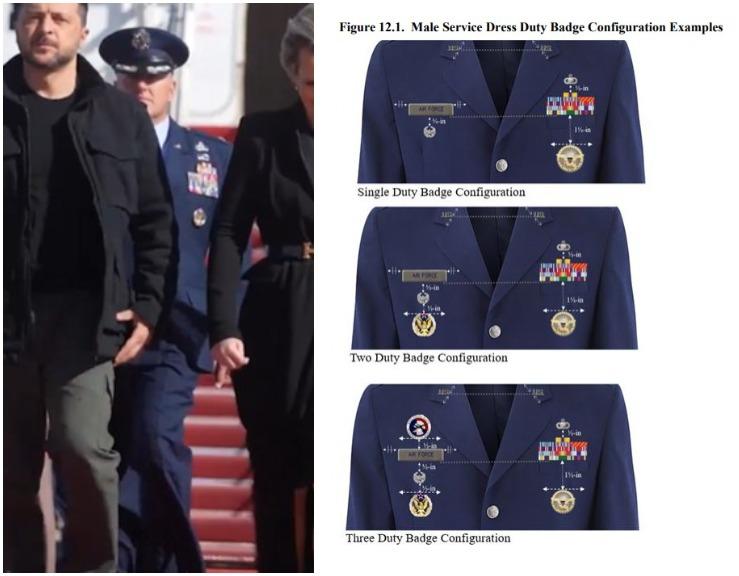 Deși AFP nu a reușit să-l identifice complet, uniforma sa este similară cu cele purtate de ofițerii superiori, așa cum arată site-ul Forțelor Aeriene ale Statelor Unite (link arhivat aici).