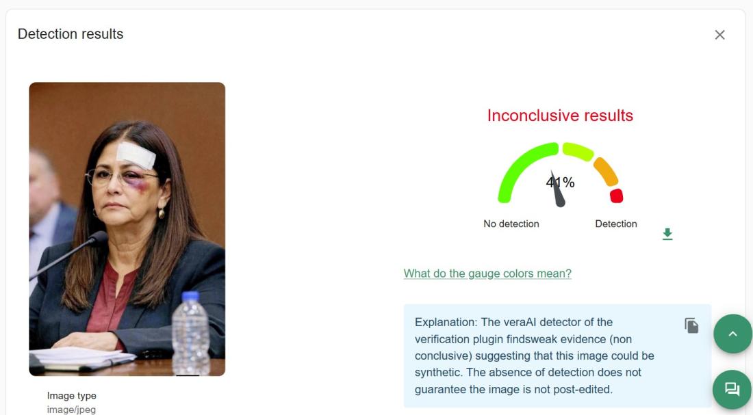 Când am analizat imaginea folosind instrumentul InVID-WeVerify, dezvoltat în colaborare cu AFP, rezultatul a fost neconcludent.