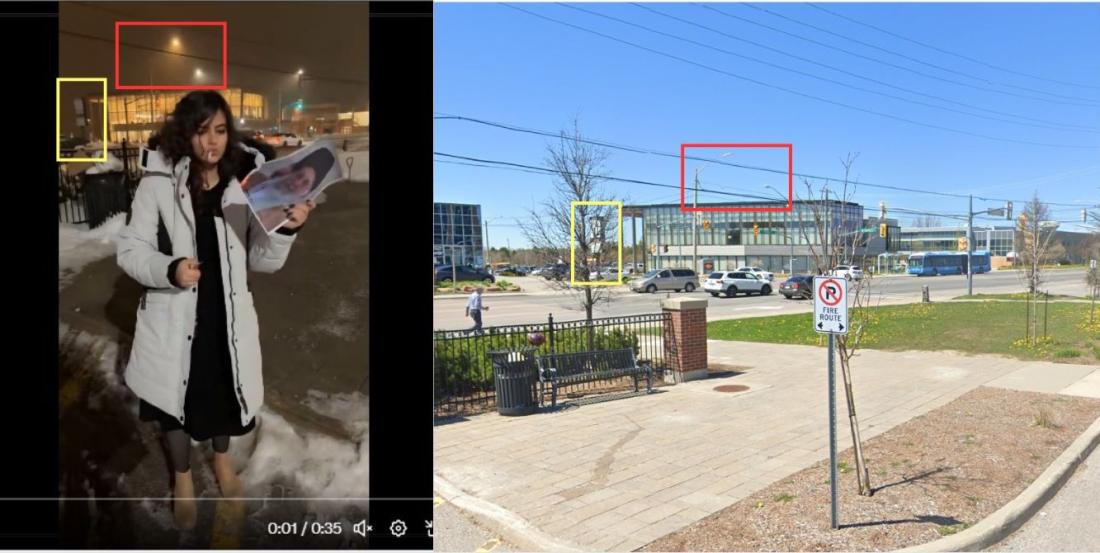 În descrierea contului, femeia din videoclip a indicat Toronto, Canada, ca loc de reședință. Organizația portugheză de fact-checking Lusa a confirmat acest lucru prin geolocalizarea videoclipului. Aceasta a stabilit că imaginile au fost filmate într-o parcare din Richmond Hill, la periferia orașului Toronto. Elementele din fundalul videoclipului corespund imaginilor de pe Google Street View.