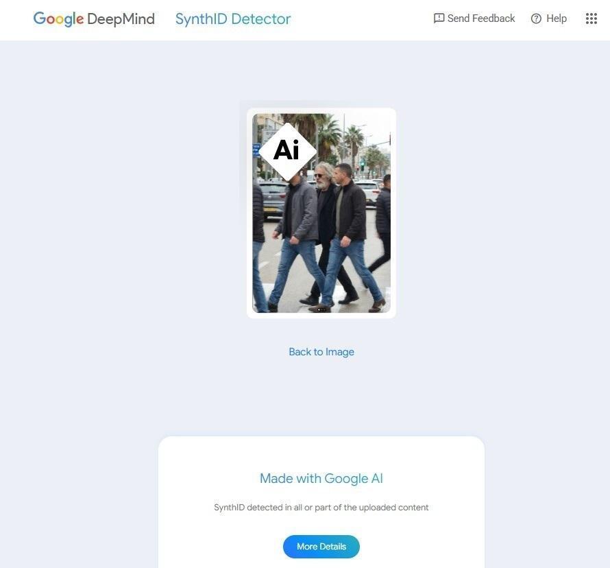 Căutările inverse de imagini realizate de AFP pentru acest vizual au returnat, de asemenea, un rezultat care indică faptul că a fost „realizat cu Google AI”, iar Gemini a detectat un SynthID — un watermark invizibil despre care Google spune că este destinat identificării conținutului creat cu instrumentele sale — atașat imaginii.