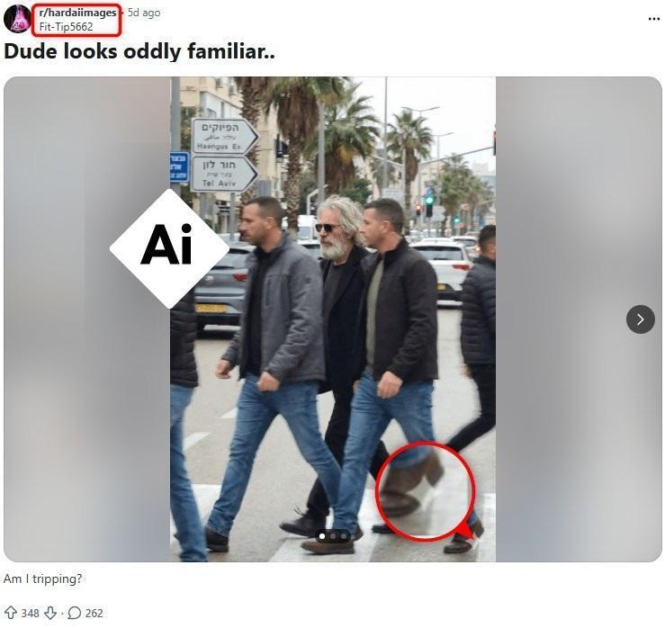 Alte indicii că imaginea este un fals generat de AI includ amplasarea greșită a indicatorului verde în partea de sus a unui semafor, precum și un semn rutier care conține o traducere eronată în ebraică pentru „Tel Aviv” și căruia îi lipsește textul în arabă, care apare de obicei.
