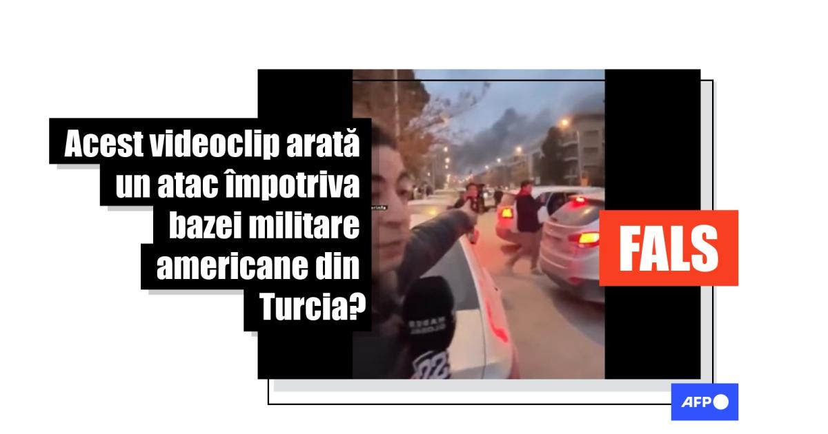 „ULTIMĂ ORĂ: Baza SUA din Turcia a fost lovită. Primele imagini ale loviturilor asupra bazei aeriene americane Incirlik din Turcia”, spune o postare pe Facebook din 2 martie 2026, distribuită de zeci de ori, care include un videoclip de 47 de secunde ce arată un presupus jurnalist cu simbolul steagului Turciei, care pare să filmeze el însuși videoclipul, relatând dintr-o zonă în care se vede fum.