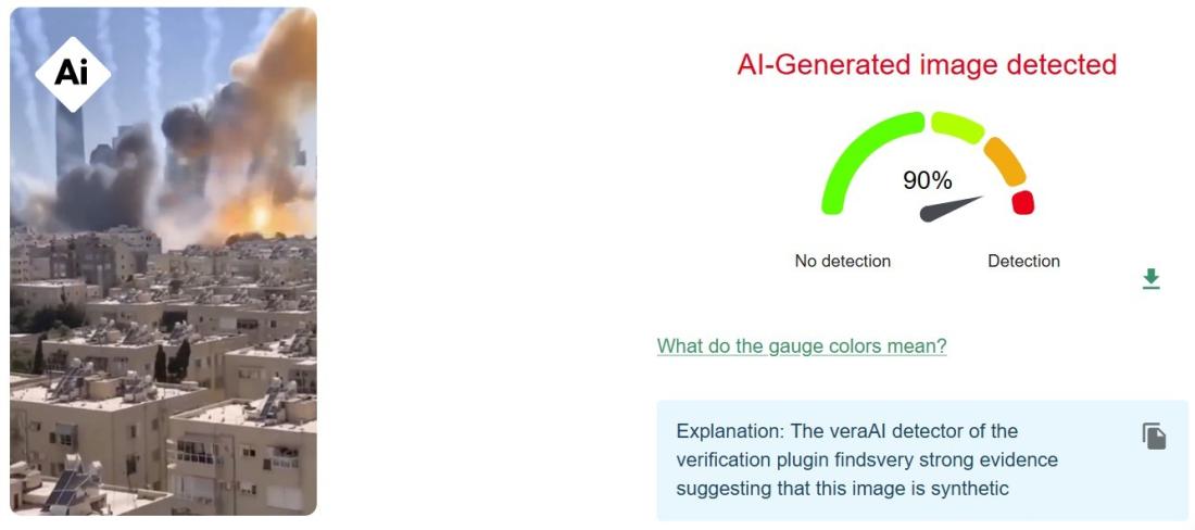 Analize suplimentare realizate cu instrumente de detectare a conținutului sintetic au indicat scoruri ridicate, sugerând că videoclipul a fost probabil generat cu ajutorul unor instrumente bazate pe inteligență artificială. Verificările efectuate pe cadre din videoclip cu ajutorul instrumentului de verificare InVid-Weverify — dezvoltat în colaborare cu AFP — au concluzionat că imaginile prezintă o probabilitate ridicată de a fi fost create cu AI.