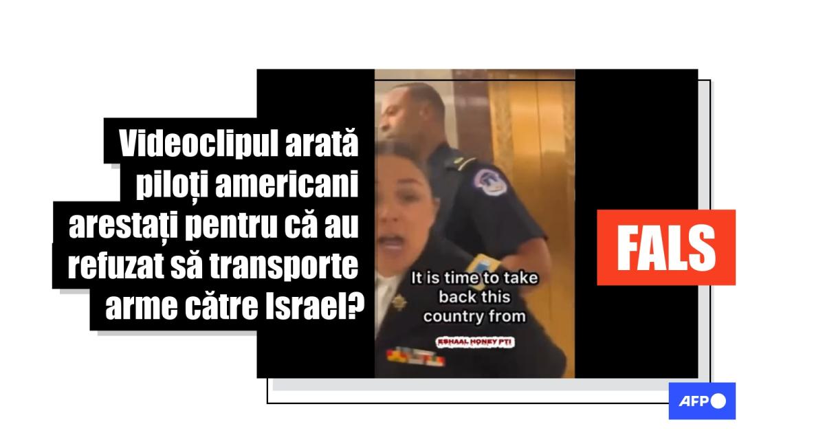 Însă videoclipul care circulă online nu arată doi piloți americani arestați pentru că au refuzat să transporte arme către Israel și nu are legătură cu conflictul actual.