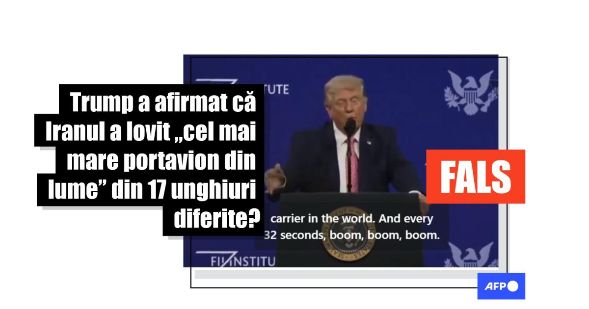 La scurt timp după discursul președintelui american Donald Trump la un summit de la Miami, pe 27 martie 2026, utilizatorii rețelelor sociale au izolat câteva minute din alocuțiunea sa, în care acesta vorbea despre atacul din Venezuela din 3 ianuarie 2026, și au distribuit-o pe rețelele sociale în mai multe limbi, cu afirmația falsă că se referea la un atac iranian asupra unui portavion american. AFP a indentificat discursul complet al lui Trump și a constatat că, în remarcile respective, acesta se referea la capturarea de către SUA a fostului președinte venezuelean Nicolás Maduro în mijlocul bombardamentelor din Caracas.