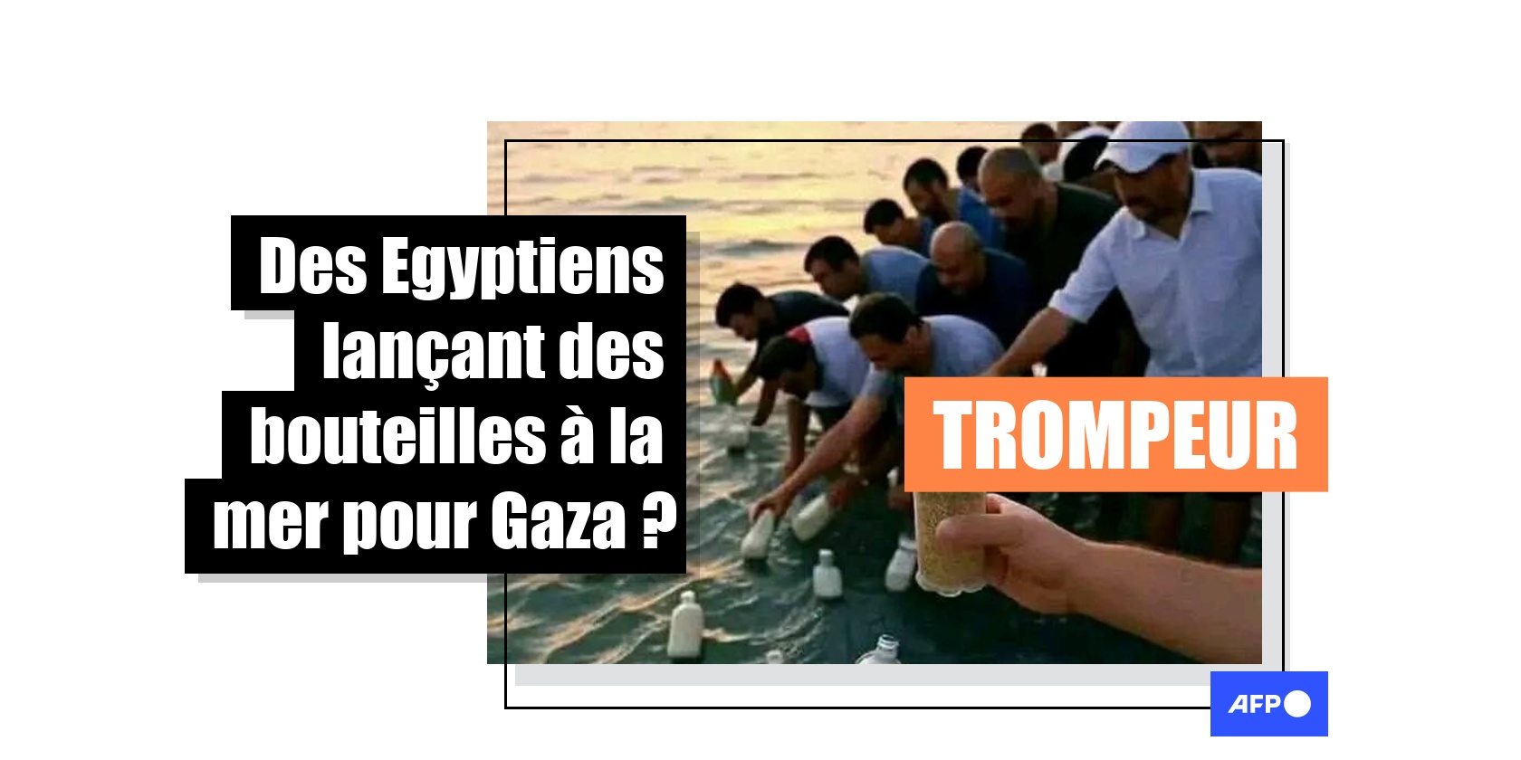 "Des jeunes égyptiens désespérés d'impuissance et écœurés par l'indifférence du régime égyptien au sort des palestiniens affamés par ses maîtres israéliens et états-uniens jette des bouteilles à la mer remplies de lait pour bébé, de farine et de riz dans l'espoir qu'elles arrivent à Gaza", écrit une internaute sur X.